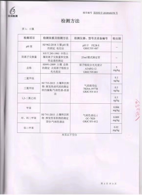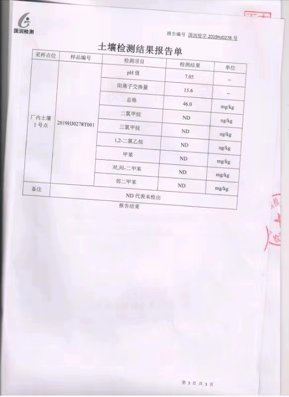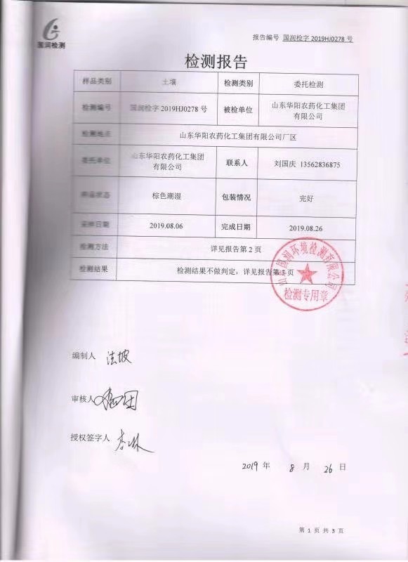 山東華陽(yáng)農(nóng)藥化工集團(tuán)有限公司土壤環(huán)境檢測(cè)報(bào)告